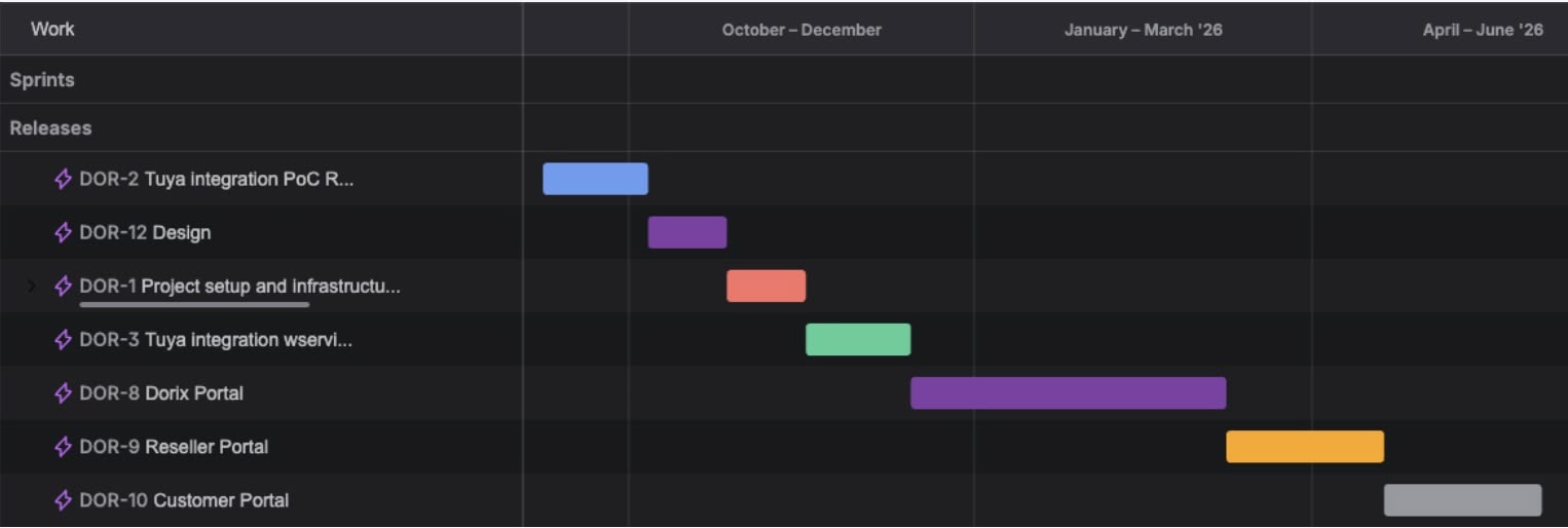 The total cost can change depending on the detailed analysis, design decisions etc. This is a maximum cost for the project. Each development phase cost includes project management, regular meetings with both the team and the client, and testing. This amount is an estimated maximum project cost and may be reduced following the Tuya integration PoC R&D phase.