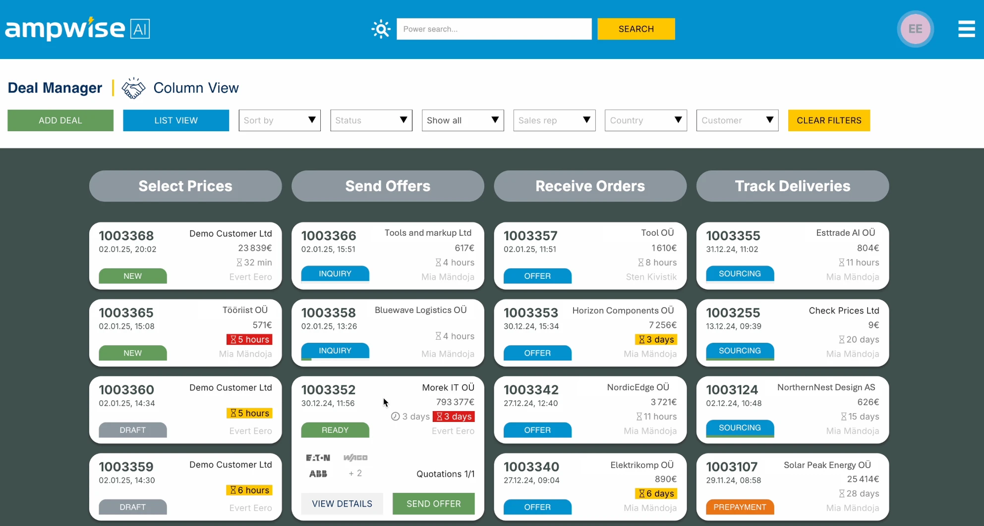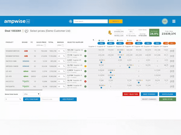 Ampwise builds AI-powered software that manages sales, customers, and deals for B2B trading of physical goods like electrical components and industrial supplies, connecting buyers and suppliers across Europe. What used to be a mess of emails, quotes, and back-and-forth negotiations became a single AI-powered dashboard.