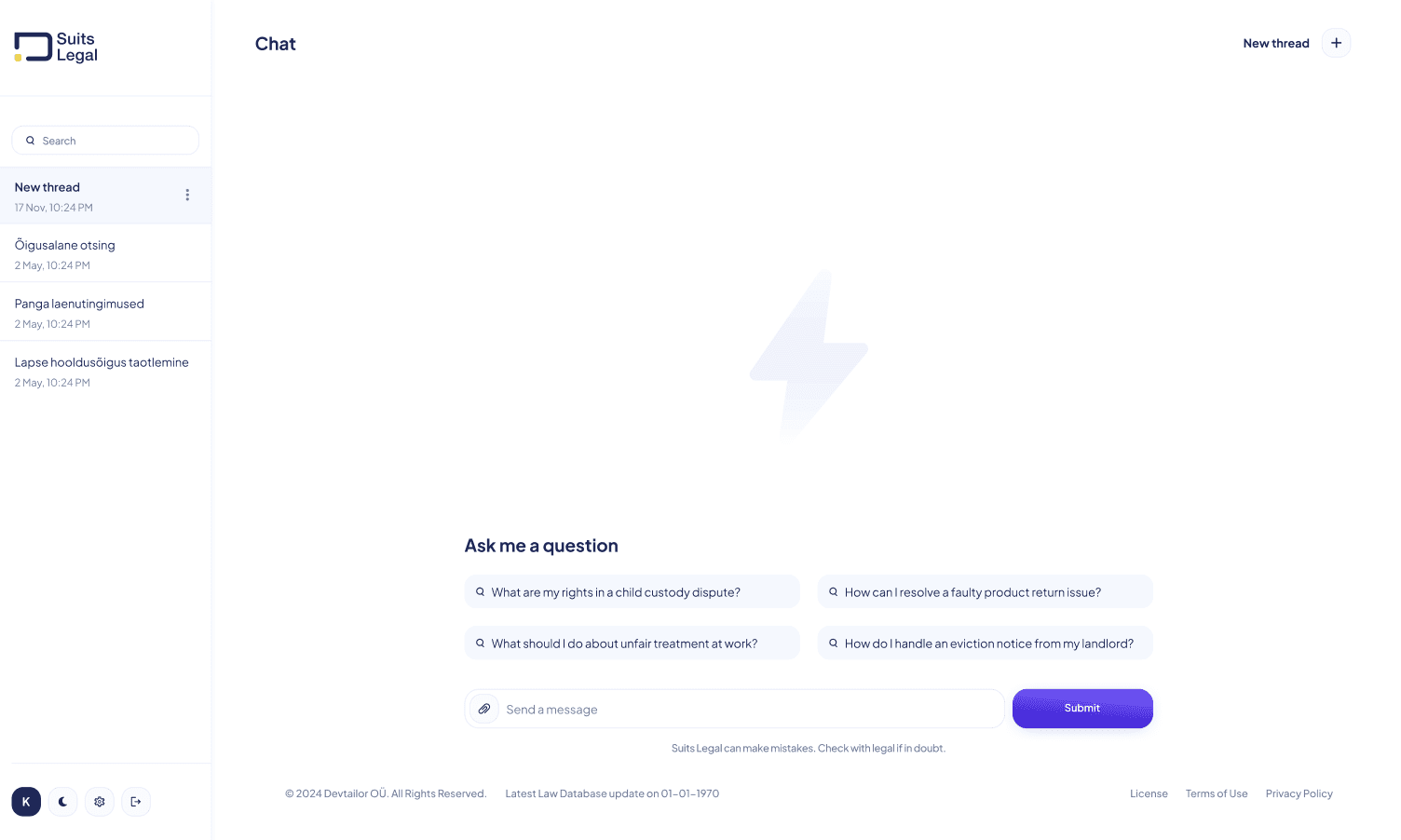 Suits Legal is a legal services AI-platform designed to make law more accessible, transparent, and user-friendly. By combining legal expertise with digital solutions, it bridges the gap between traditional legal services and the growing need for fast, clear, and affordable legal support.